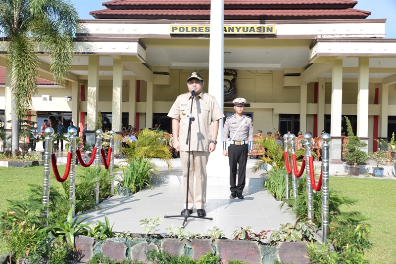 Banyuasin- Bupati Banyuasin, Yan Anton Ferdian, SH bertindak selaku inspektur pada apel gelar pasukan Operasi Ramadniya 2016 yang di gelar di Mapolres Banyuasin, Kamis, 30 Juni 2016.