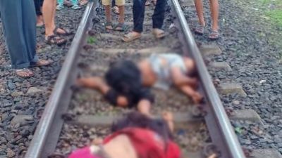 Dua mayat tergeletak pada rel kereta api di kawasan Bedeng PJKA