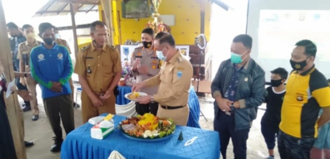 Acara peresmian Bank Sampah Semidang Indah ditandai dengan pemotongan nasi tumpeng, Pantauan awak media ini tampak hadir di lokasi Kapolres Lahat AKBP Achmad Gusti Hartono, Kapolsek Kota IPTU Irsan, kepala DLH Lahat Ir.Agus Salman, Kepala BPBD ALI Afandi, Kepala Dinas Kominfo Rudhi Dharma, Kepala Dinas Koperasi Yahya Edward, Kasat Pol-PP Fauzan Khoiri, PLH KADINKES Lahat Taufik M Putra.(ST)