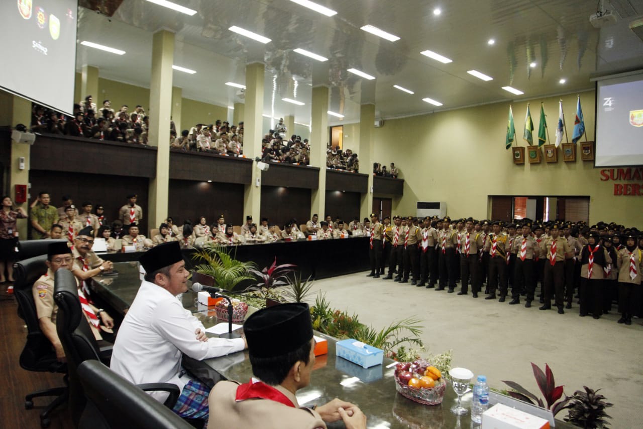 PALEMBANG,Sumseltoday.com – Semarak kegiatan Pramuka yang semakin berkurang belakangan ini dinilai Gubernur Sumsel H.Herman Deru perlu mendapat perhatian khusus. Atas dasar itupula Ketua Majelis Pembimbing Daerah (Kamabida) Pramuka Provinsi Sumsel itu menginstruksikan jajarannya untuk segera mengaktifkan kembali Bumi Perkemahan milik Provinsi Sumsel yang berada di kawasan Kecamatan Gandus. Hal itu disampaikan Gubernur Sumsel Herman Deru saat menghadiri Pengukuhan Pramuka Penegak dan Pramuka Pandega Daerah Sumsel Tahun 2019, di Auditorium Bina Praja, Jumat (9/8) sore.