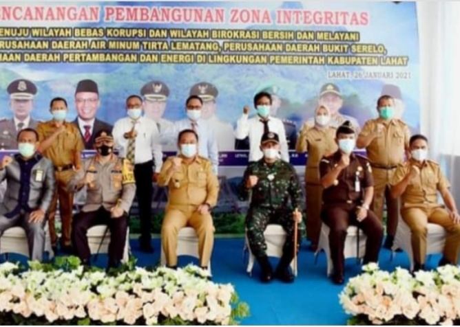 Pencanangan Pembangunan Zona Integritas tersebut di buka secara langsung oleh Bupati Lahat Cik Ujang, SH. Yang Hadir dalam kesempatan tersebut, Dandim 0405 Lahat, Kapolres Lahat AKBP, Achmad Gusti Hartono, SIK, Kajari Lahat, Ketua Pengadilan Negeri, Pj. Sekda Lahat Drs.H. Deswan irsyad.M.Pdi, Assisten, Jajaran OPD terkait, Kabag Hukum, Kabag Ekonomi, Derektur PDAM Tirta Lematan, Derektur Perusda Hotel Bukit Serelo dan Perusda Pertambangan Energi.