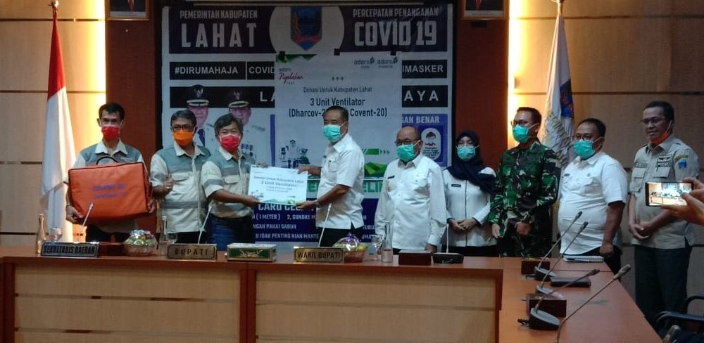 ” Dengan bantuan tiga alat ventilator ini kita harapkan dapat membantu proses penyembuhan covid-19,dengan adanya preventif sehingga tidak ada kejadian korban meninggal di Kabupaten Lahat dan mudah-mudahan dapat berguna untuk masyarakat Kabupaten Lahat,Bantuan ventilator ini juga di topang oleh Adaro group dalam rangka berkontribusi dalam rangka pencegahan pandemi covid-19 untuk bersama-sama bersinergi di semua area kerja group sehingga mempunyai standar yang sama seperti di Lahat,Kalsel,Kalteng maupun area kerja yang lain,”Terang Yana pada awak media.