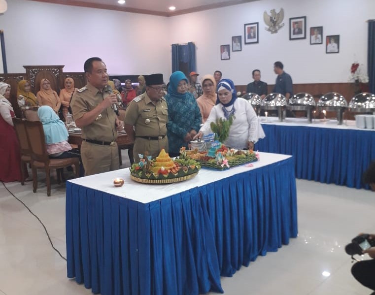 Usai menyampaikan sambutan kegiatan dilanjutkan dengan potong tumpeng yang dilakukan oleh Bupati lahat H.Cik Ujang/ reporter. (antoni)