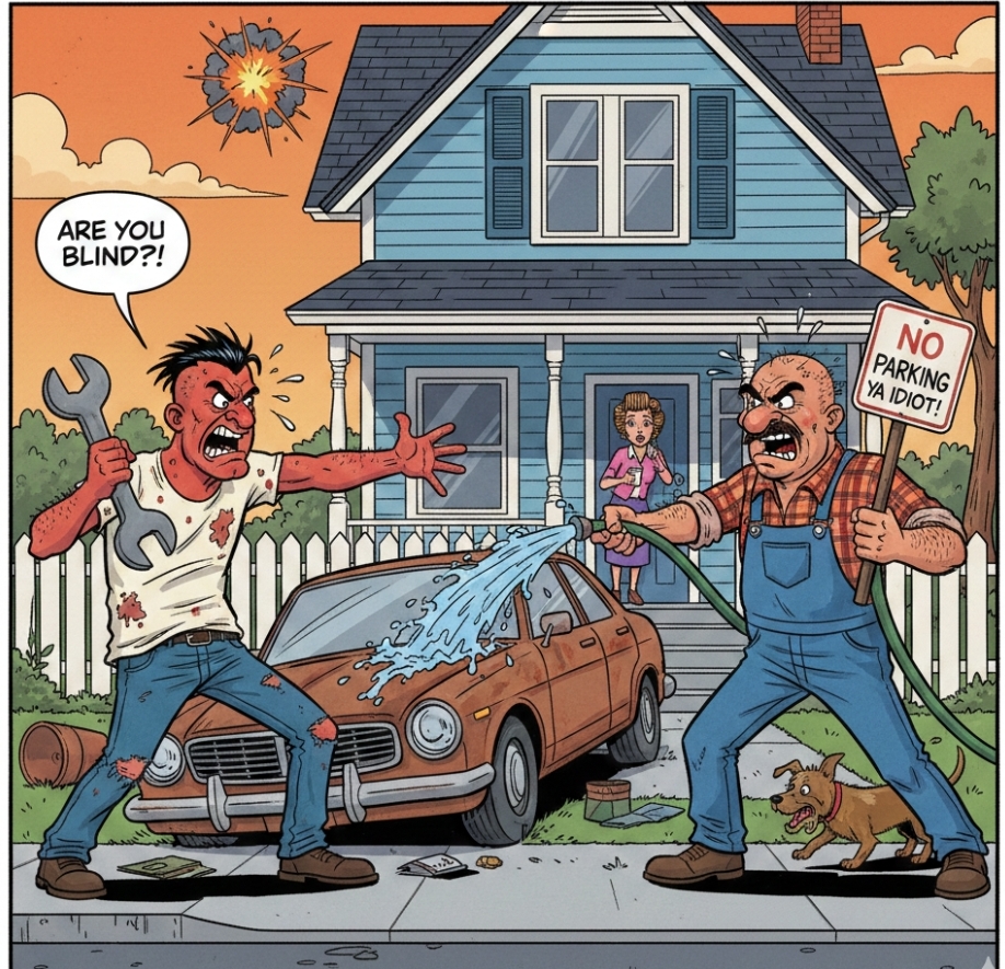 Saat itu, pelaku hendak memasukkan mobil ke dalam garasi. Namun ia merasa aksesnya terhalang oleh kendaraan yang terparkir di depan rumah tersebut. Pelaku kemudian membunyikan klakson berulang kali.