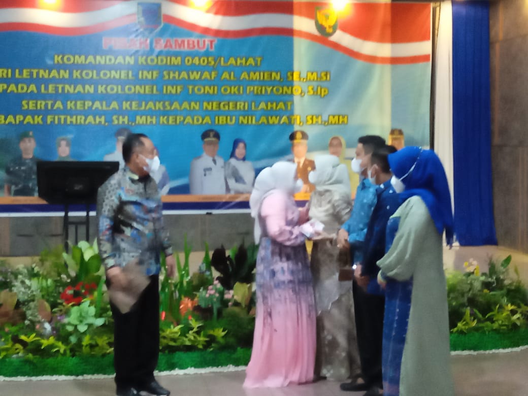 Lahat, Sumseltoday.com – Acara pisah sambut komandan kodim 0405/Lahat dari Letnan Kolonel Infanteri Shawaf Al Amien, SE. M. Si kepada Letnan Kolonel Infanteri Toni Oki Priyono, S. Ip serta kepala kejaksaan negeri Lahat dari bapak Fitrah, SH. MH kepada ibu Nilawati, SH. MH di pendopoan rumah dinas Bupati Lahat berjalan khidmat pada Senin, 14/03/22 malam.