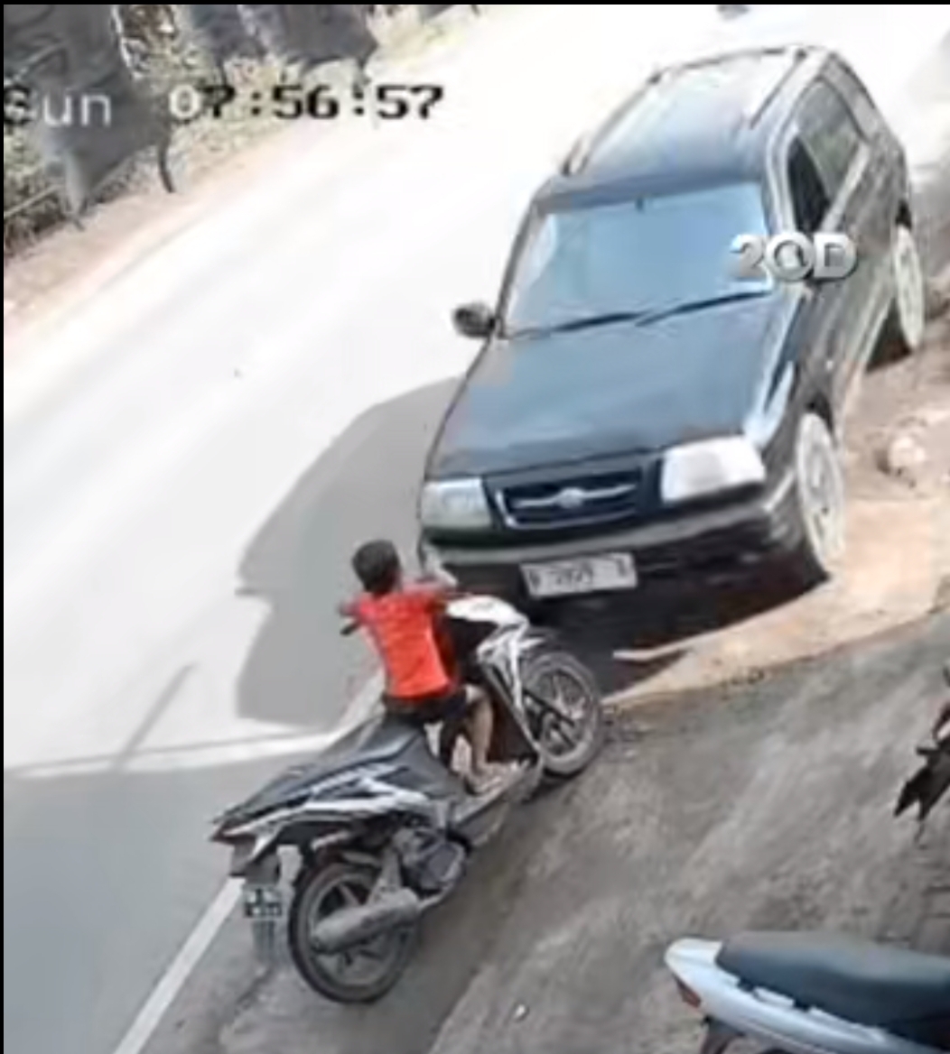 Peristiwa tersebut terjadi saat korban bersama ibunya berhenti untuk berbelanja dan duduk di atas sepeda motor yang diparkir di tepi jalan. Tiba-tiba, sebuah mobil hitam melaju cepat keluar dari jalurnya dan langsung menabrak korban. Akibat benturan keras, korban bersama sepeda motornya terpental beberapa meter.