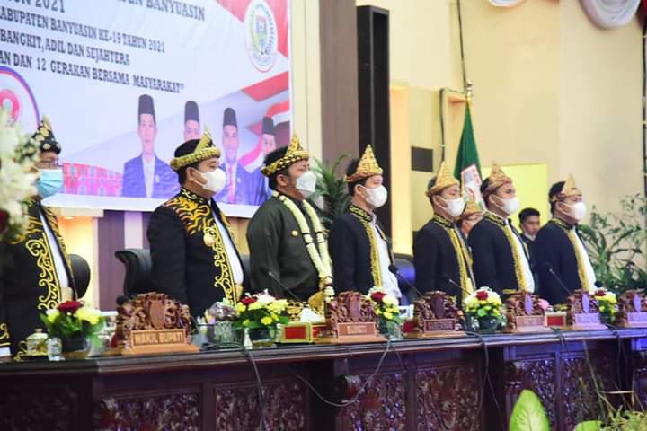 Rapat Paripurna tersebut dihadiri Gubernur Sumsel Herman Deru, Ketua DPRD Banyuasin Irian Setiawan, SH beserta seluruh Anggota DPRD Banyuasin, Bupati Banyuasin H. Askolani, SH.,MH dan Wakil Bupati Banyuasin H. Slamet Sumosentono, SH, Kejari Banyuasin, Kapolres Banyuasin, Dandim 0430/ Banyuasin serta seluruh Kepala OPD di lingkup Pemkab Banyuasin.