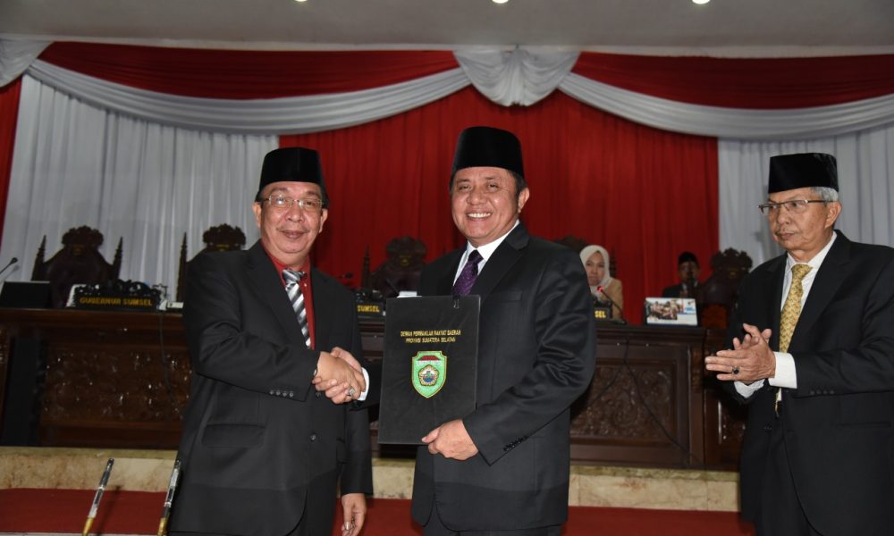 PALEMBANG, Sumseltoday.com- Gubernur Sumatera Selatan H. Herman Deru dan Wakil Gubernur. Ir H. Mawardi Yahya, Senin (8/7) menghadiri rapat Paripurna LX (60) DPRD Prov. Sumsel dengan agenda, Penyampaian Laporan Hasil Pembahasan dan Penelitian Komisi-Komisi terhadap Raperda Pertanggungjawaban Pelaksanaan APBD Prov. Sumsel Tahun Anggaran 2018.
