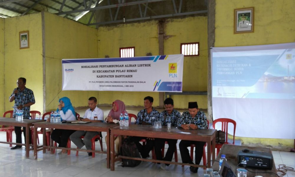 PALEMBANG,Sumseltoday.com – Seiring gencarnya Program Listrik  Pedesaan (Lisdes) yang terus dilakukan oleh PT.  PLN (Persero) sebagai bentuk  tanggung jawab dalam menjalankan penugasan dari pemerintah sesuai Program Nawa Cita Presiden Republik Indonesia, PLN Area Palembang melakukan Sosialisasi Penyambungan Baru Listrik di Kecamatan Pulau Rimau yang dilaksanakan pada Hari Kamis (3/5/18) bertempat di Balai Desa Karang Manunggal.