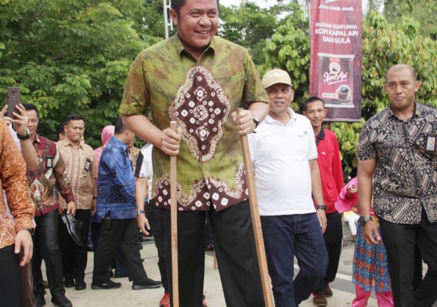 Kepiawaian mantan Bupati OKU Timur dua periode ini berjalan menggunakan engrang dan bakiak batok kelapa menjadi perhatian mereka yang hadir