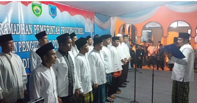 Mengawali tepat pada hari ini atau malam ini, ditambahkan Gubernur, telah dilaksanakan secara bersama sholat Isya dan Teraweh di masjid Al-Muttaqin yang sangat indah. dan juga telah dikukuhkan Petugas Penghubung Urusan Keagamaan Desa dan Kelurahan