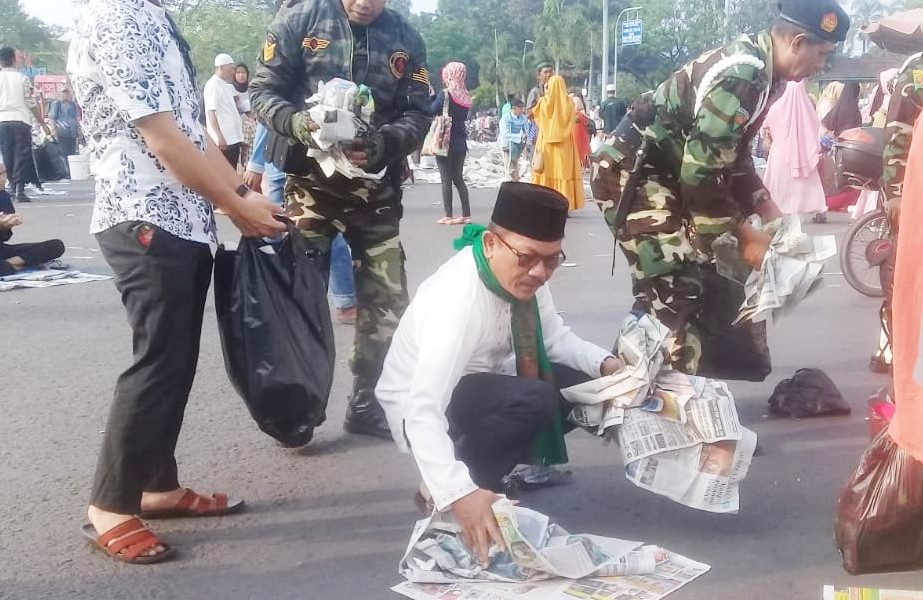 PALEMBANG,Sumseltoday.com– Ada pemandangan yang menarik pada pelaksanaan sholat Idul Adha di Mesjid Agung Palembang. Terpantau oleh wartawan, sejumlah anggota Banser bergotong royong membersihkan sampah koran bekas setelah digelarnya sholat hari raya qurban tersebut, Barisan Ansor Serbaguna (Banser) Sumsel ini ternyata dari pagi subuh sudah mensiagakan pasukannya di titik strategis Mesjid Agung Palembang, pada Rabu(22/8).