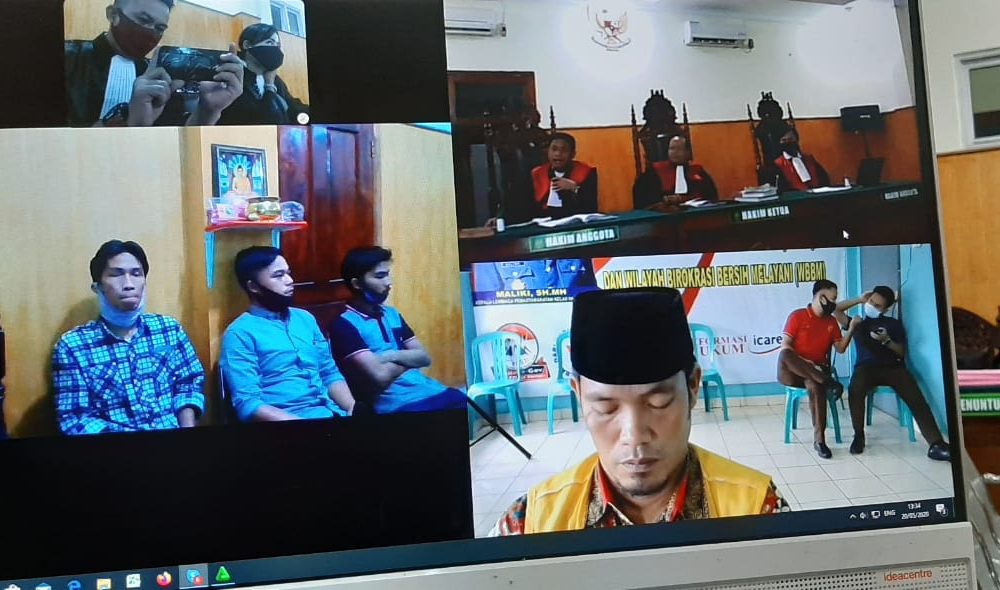 Pelaksanaan sidang yang berlangsung secara Virtual Comprence di Gedung Pengadilan Negeri Lahat,di ketua Langsung oleh Hakim Ketua Yoga Dwi A Nugroho, SH.MM,serta dua Hakim Anggota Saipul Brow, dan Maharta panitera Martiah