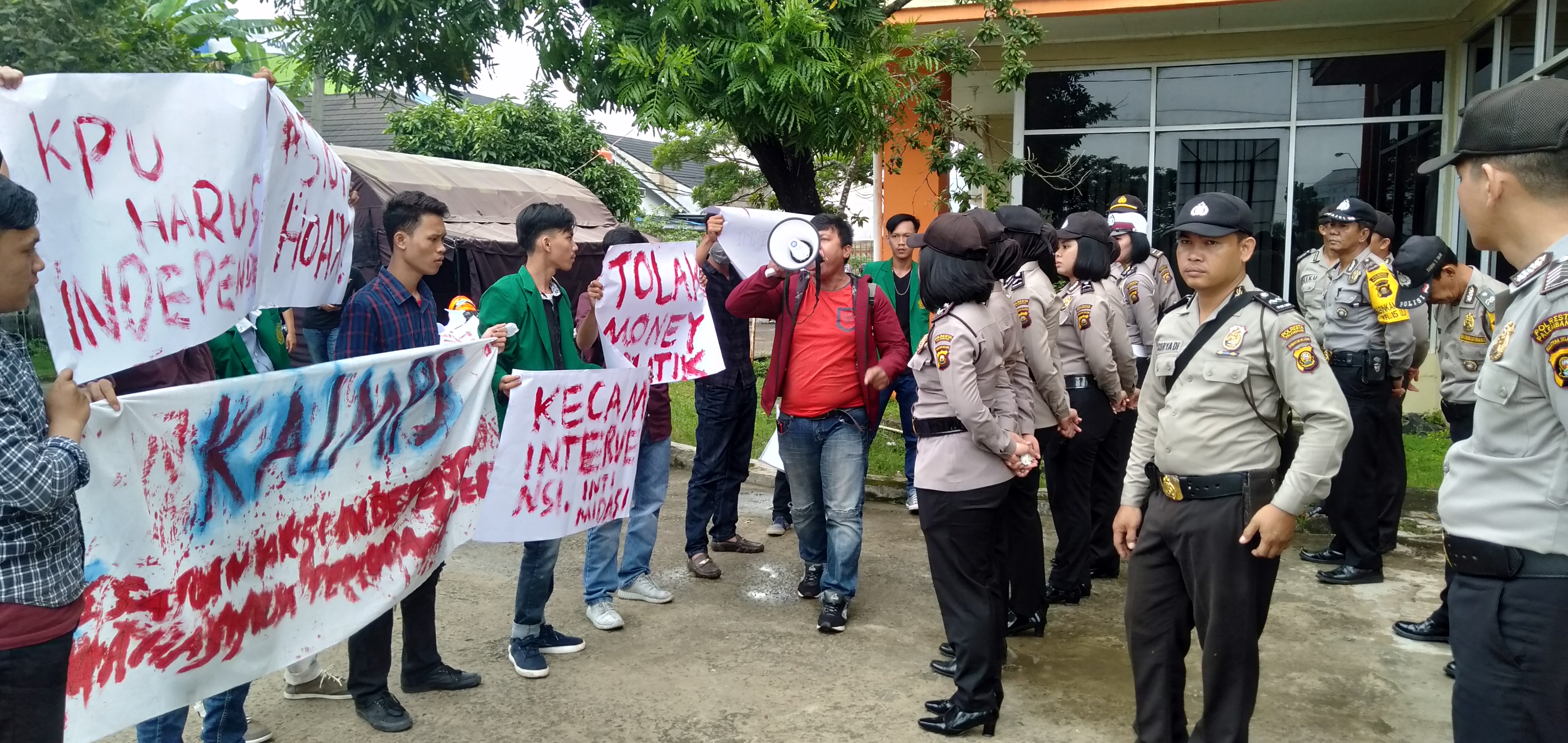 “Kami menginginkan adanya independensi dari KPU, dan mengecam keras adanya intervensi dari pihak-pihak yang ingin menggagalkan pesta demokrasi ini, Jika ada kecurangan dan kendala dilapangan maka kami akan turun kejalan, intinya kami sepenuhnya mengawal pesta demokrasi ini,” pungkasnya.