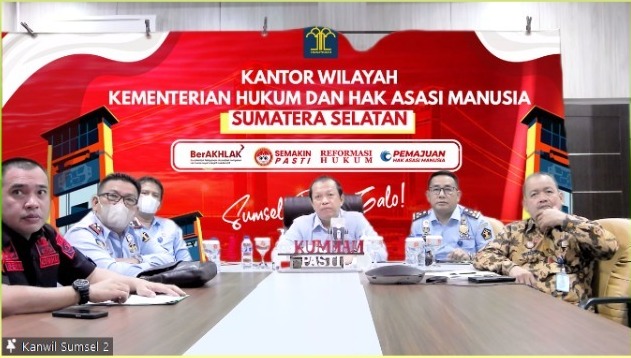 Palembang – Kakanwil Kemenkumham Sumsel, Harun Sulianto, Senin (1/12) melaksanakan kegiatan penyampaian Hasil Rapat Koordinasi Pengendalian Capaian Kinerja Kemenkumham Tahun 2022 kepada jajaran Unit Pelaksana Teknis (UPT) secara hybrid bertempat di Ruang Teleconference setempat.