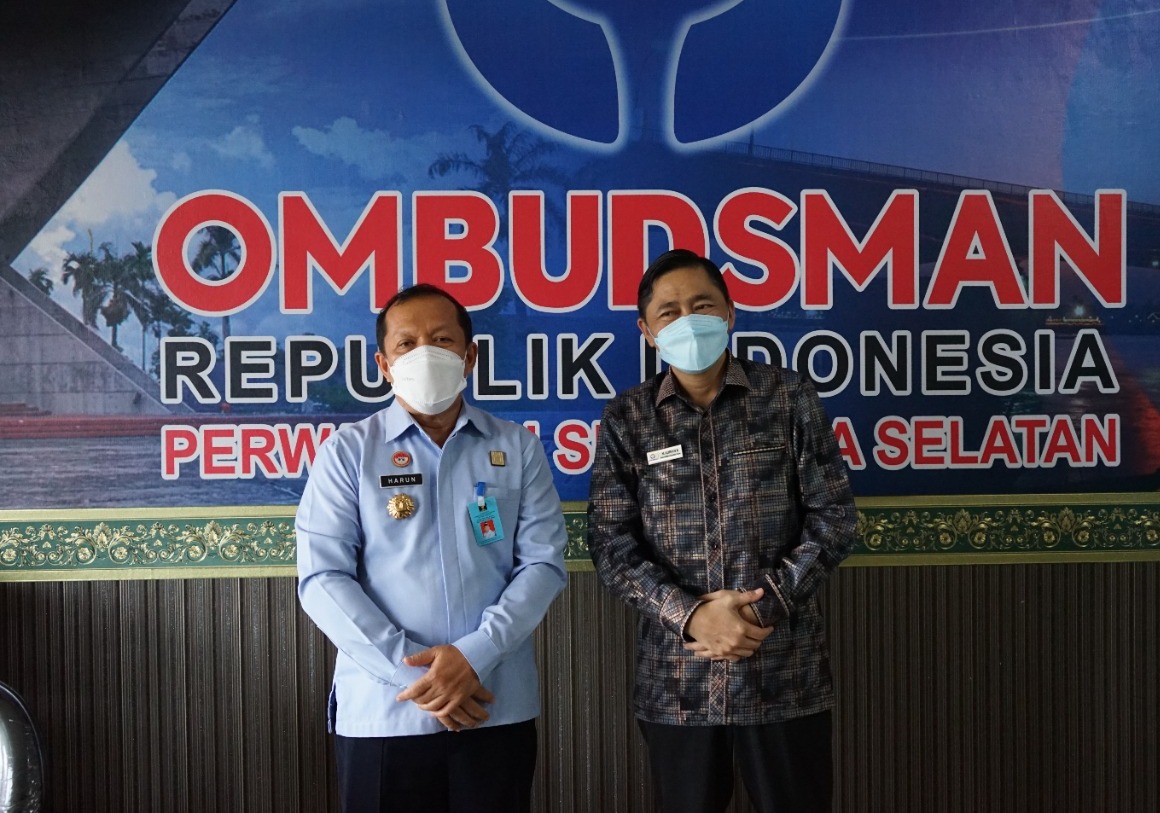 Palembang, Sumseltoday.com – Kepala Kantor Wilayah Kementerian Hukum dan HAM Sumatera Selatan, Harun Sulianto melakukan kunjungan kepada Kepala Ombudsman Republik Indonesia Perwakilan Sumatera Selatan, M. Adrian Agustiansyah, SH. M.Hum, Selasa (29/03/2022).