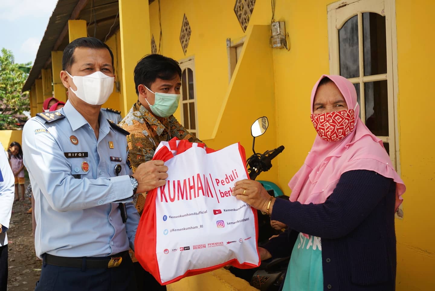 Usai menyaksikan arahan Menkumham, Kepala Kantor Wilayah Kementerian Hukum dan HAM Sumatera Selatan, Indro Purwoko secara simbolis menyerahkan bantuan kepada perwakilan masyarakat dan pegawai yang terdampak Covid-19. Tak hanya itu, penyerahan bantuan juga dilakukan langsung kepada para keluarga yang terdampak. Kakanwil bersama jajarannya pun turun langsung ke lapangan untuk memberikan paket bantuan yang berisi sembako, vitamin, masker, serta bentuk lain yang dibutuhkan masyarakat. (*).