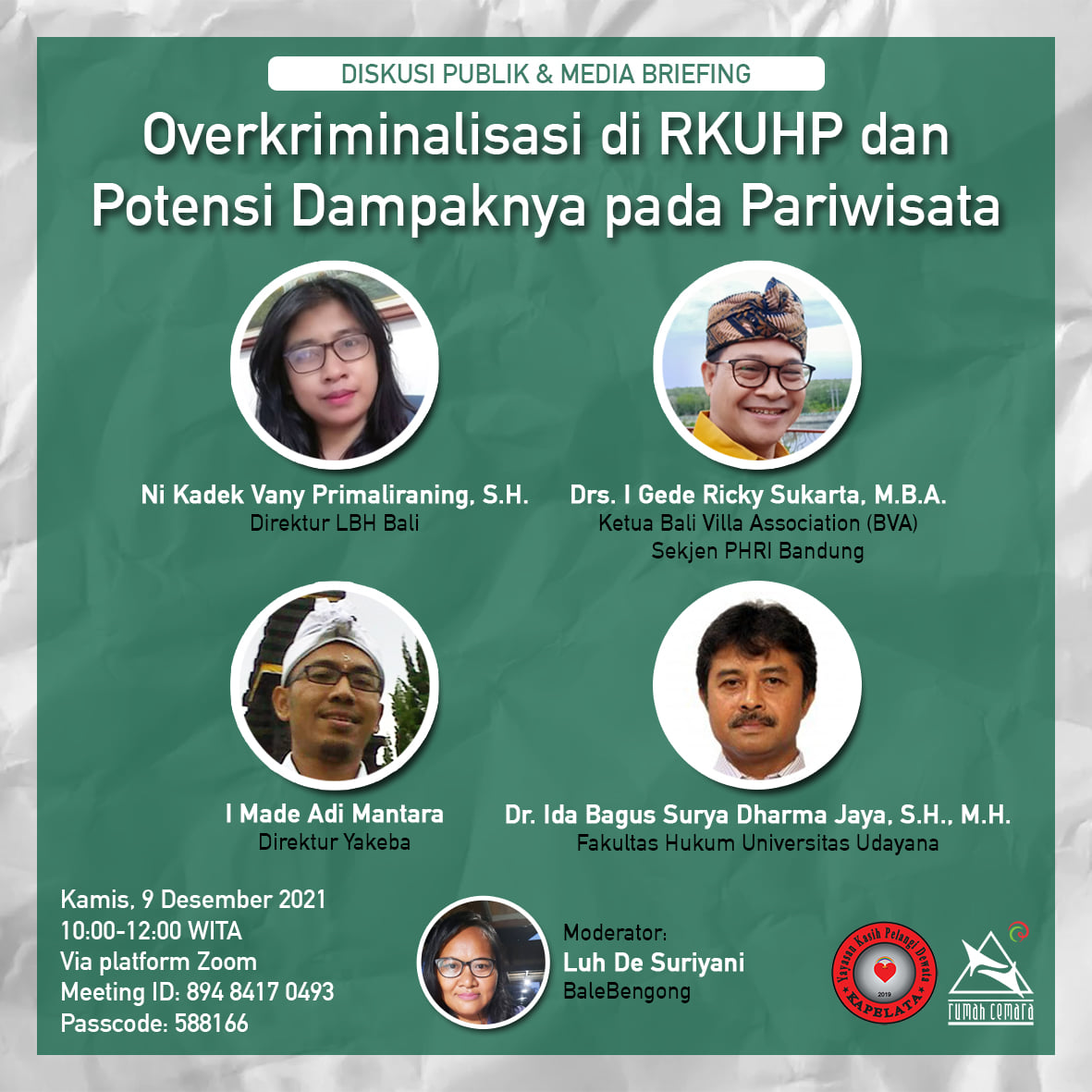 Demikian terungkap dalam Diskusi Publik “Overkriminalisasi di RKUHP dan Potensi Dampaknya pada Pariwisata” yang digelar secara daring oleh Yayasan Kasih Pelangi Dewata dan Rumah Cemara, Kamis (9/12).