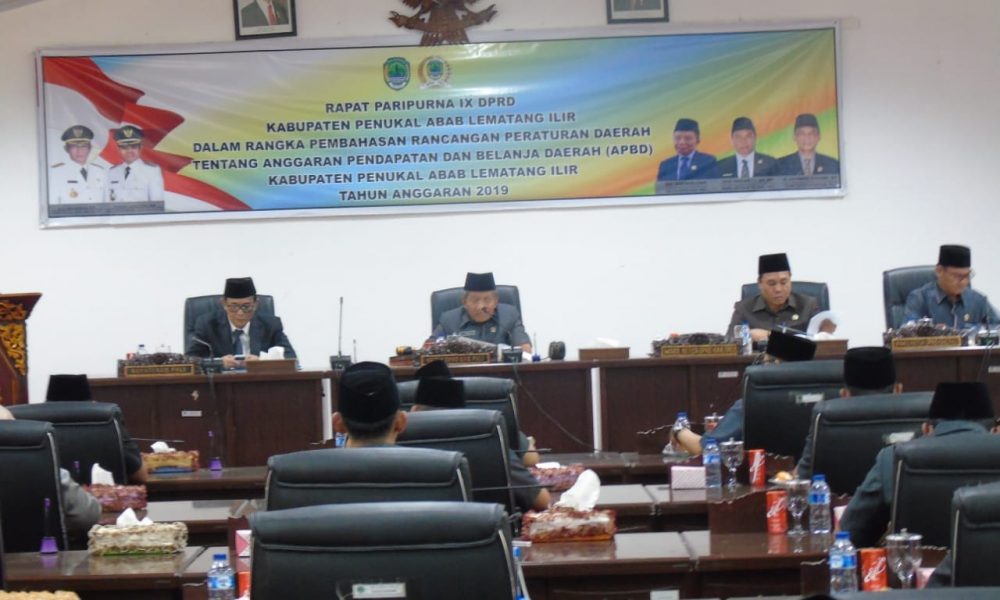 PALI, Sumseltoday.com -Sidang Paripurna Istimewa ke IX DPRD Kabupaten PALI Tentang Pembahasan Rancangan Peraturan Daerah RAPBD tahun anggaran 2019,mengagendakan sidang lanjutan jawaban Bupati Terhadap pandangan fraksi-fraksi terkait usulan RAPERDA yang telah diusulkan oleh pemkab PALI melalui Bupati dalam sidang Paripurna sebelumnya.