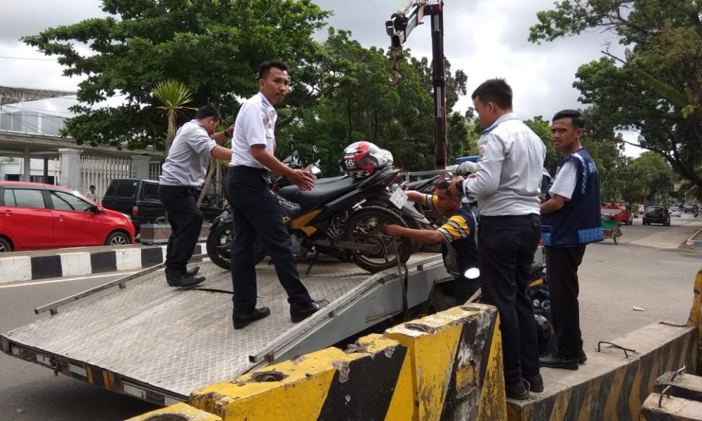 PALEMBANG,Sumseltoday.com – Puluhan Kendaraan Roda dua yang parkir di depan PS Mall tepatnya di ruas jln. Pom IX Diangkut oleh petugas dinas Perhubungan Kota Palembang pada Rabu(23/05), operasi ini dilakukan secara mendadak guna menertibkan parkir liar yang bukan pada zonanya, pihak dinas perhubungan menindak lanjuti dan menyikapi hasil pengaduan laporan dari masyarakat, sekaligus merupakan kegiatan rutin Dinas Perhubungan kota Palembang, ketika berpatroli mobil saat melintas dikawasan Pom IX Seputaran Palembang Square (PS) Mall, ditemukan banyaknya parkir liar dikawasan tersebut untuk menyikapi hal permasalahan itu,Dinas perhubungan kota Palembang langsung turun kelapangan dan mengamankan puluhan motor yang parkir sembarangan atau parkir bukan pada zonanya