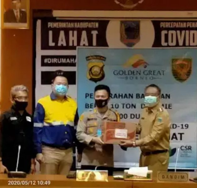 Lahat | Sumseltoday.com – Kepedulian terhadap dampak virus covid 19 PT GGB (Golden Great Borneo), Polres dan Kodim 0405 sumbang 10 ton beras dan 300 dus mie instan kepada Pemkab Lahat guna membantu masyarakat yang terkena imbas pandemi Corona. Bupati Lahat Cik Ujang,SH menerima langsung bantuan diOprom Pemkab Lahat Selasa (12/5/20)