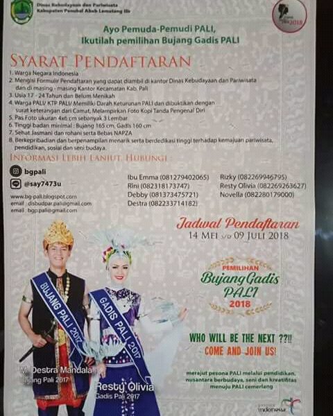 Hal ini juga di benarkan oleh Drs.Suprihyatno Selaku Kepala Dinas Disbudpar Kab Pali, “bahwa pemilihan bujang gadis pali ini benar akan di adakan, sebagai dinas kebudayaan kami telah membagikan brosur pendaftaran, ke masing – masing kantor kecamatan di kabupaten Pali Pada hari,Jumat (25/05)
