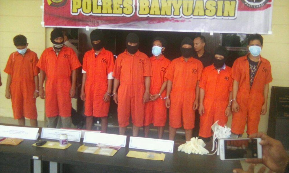 BANYUASIN, Sumseltoday.com – Satuan Reserse Narkoba Polres Banyuasin dan Polsek Jajarannya berhasil meringkus 7 Tersangka pengedar narkoba di tempat yang berbeda. Hal tersebut di sampaikan Kapolres Banyuasin saat menggelar Press release di Mapolres Banyuasin Selasa (17/10) sekira jam 09.00 WIB.