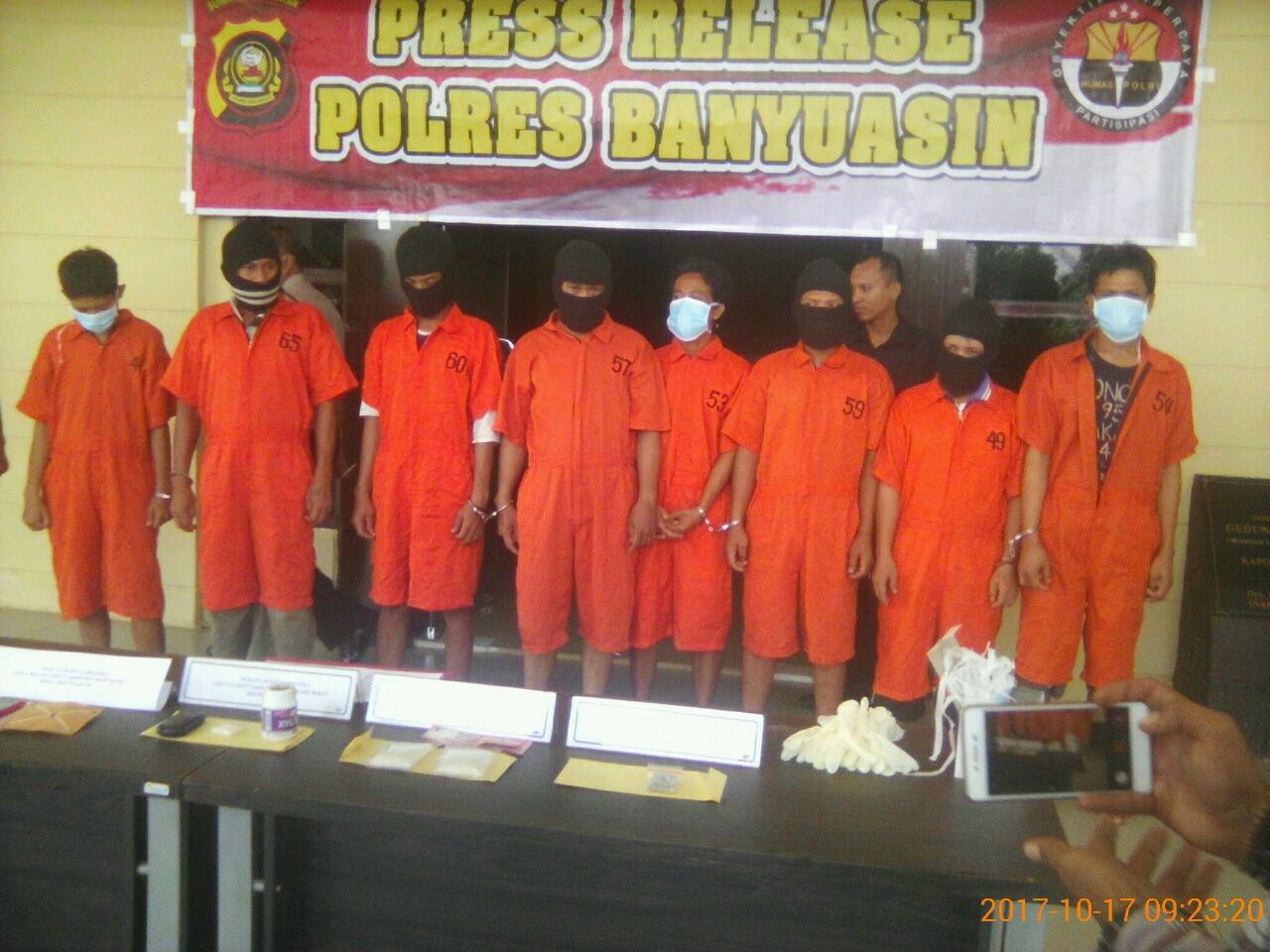 Kapolres juga menambahkan, 6 tersangka yang diringkus tim opsnal gabungan Polres Banyuasin dan Polsek Jajaran yakni MH 2 paket sabu dan uang Rp 874.000, yang di tangkap Polsek Betung di jalan Palembang- Jambi depan timbangan lama Kelurahan Rimba Asam Kecamatan Betung,
