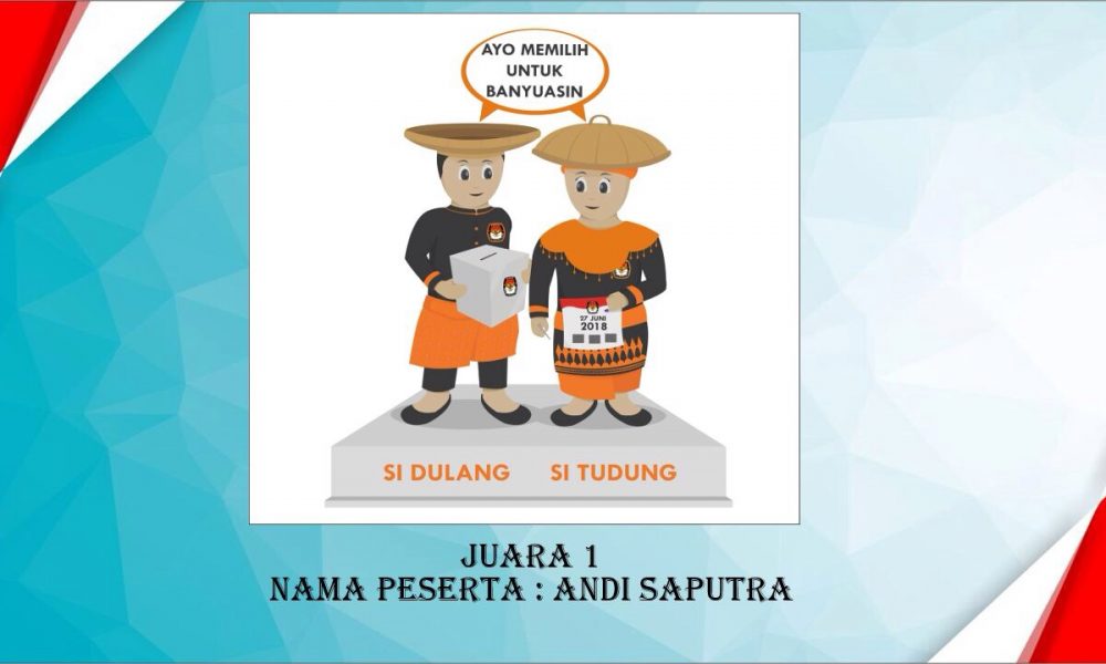 Banyuasin, SUMSELTODAY.COM – Maskot Si Dulang dan Situdung menjadi maskot KPUD Banyuasin pada Pemilukada 2018. Hal ini diketahui saat pengumumam pemenan lomba pembuatan Maskot dan lagu jingle KPUD Banyuasin, Rabu (4/10/2017) siang tadi.