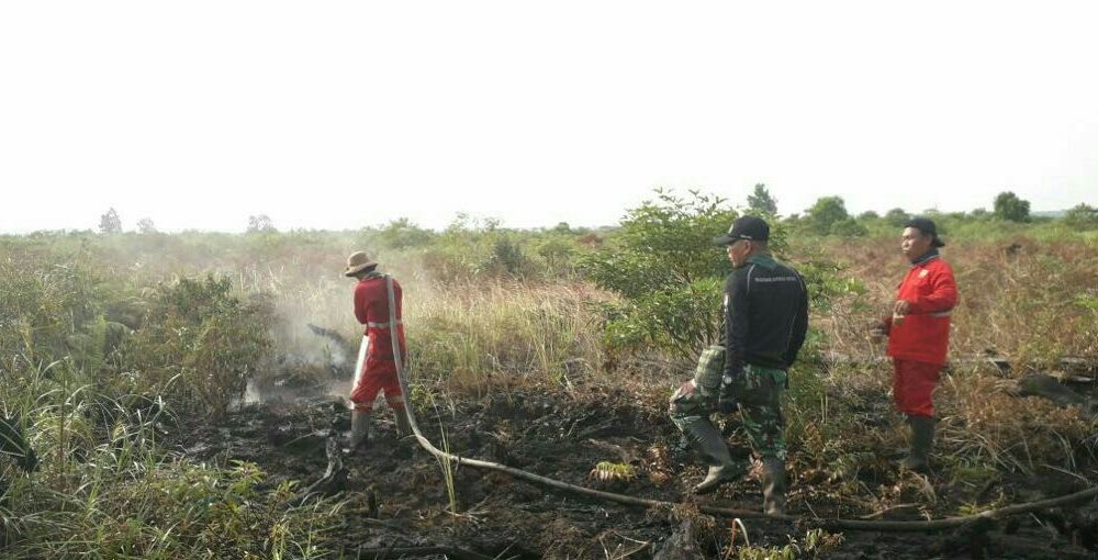 Sebanyak 32 petugas gabungan TNI bersama RPK dan Masyarakat Peduli Api (MPA) dengan menggunakan 4 unit kendaraan Damkar dan 27 unit mesin pompa berhasil mencegah menjalarnya api yang membakar di lahan tersebut, dan api akhirnya dapat dipadamkan.