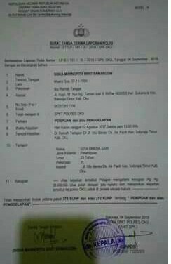 Karena merasa telah menjadi korban penipuan dan dirugikan ratusan juta rupiah Akhirnya SM melaporkan kejadian yang dialaminya ke SPKT Mapolres OKU, dengan membawa beberapa bukti, diantaranya bukti transfer uang yang pernah dikirimkan kepada terduga pelaku beserta berkas yang sudah ditanda tangani oleh 17 diduga korban lainnya. Dengan bukti laporan: LP- B/ 161 / IX / 2018 / SPK OKU, Tanggal 04 September 2018. Pasal 378 KUHP atau 372 KUHP tentang Penipuan dan atau Penggelapan.