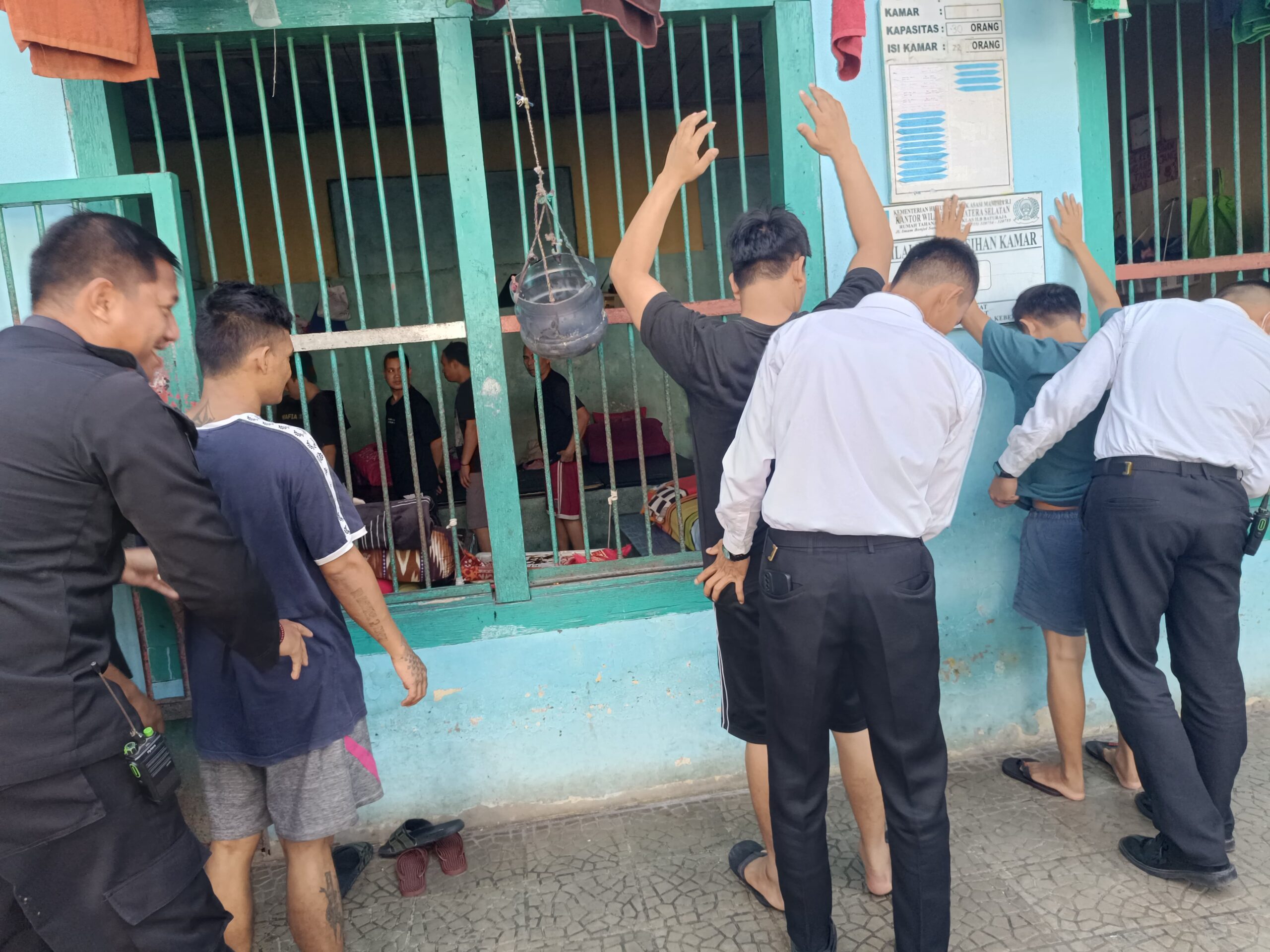 Baturaja – Dalam rangka meningkatkan keamanan dan ketertiban di lingkungan Rumah Tahanan Negara Kelas IIB Baturaja, jajaran petugas melaksanakan razia kamar hunian warga binaan. Dipimpin langsung oleh pejabat struktural bersama tim pengamanan.