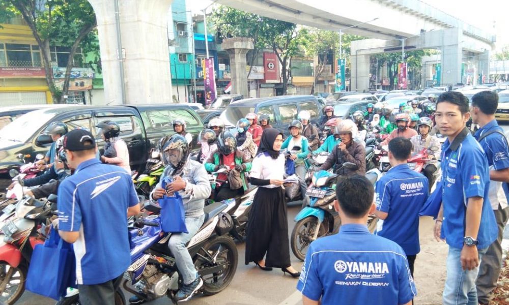 Palembang, Sumseltoday.com – Di hari Pelanggan Nasional yang jatuh pada tanggal empat September, Yamaha Thamrin Brothers turut memberikan apresiasi kepada customer dan non customer Yamaha dengan cara membagikan souvenir menarik kepada masyarakat yang melintas di tujuh titik lampu merah di Palembang.